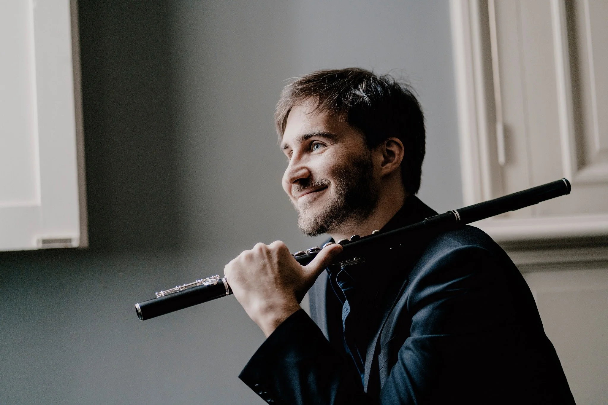 His impressive repertoire includes performances with the Slovenian Philharmonic Chamber Orchestra, featuring concertos like Mozart's Concerto for Flute and Harp, CPE Bach's Flute Concerto in D minor, Bach's Brandenburg Concerto No. 5, and the Triple Concerto for Flute, Violin, and Harpsichord in A minor, and Barber's "Capricorn" Concerto. He has also performed Bach's Brandenburg Concerto No. 2 with trumpeter Reinhold Friedrich and Bach's Suite in B minor with the Dissonance ensemble. His performances span renowned venues like St. John’s Smith Square, St. Martin in the Fields, Kyoto Bunka Kaikan Hall, and Atsuta Hall in Nagoya. Additionally, he has led masterclasses in Cyprus, Japan, the UK, Italy, and Slovenia.
